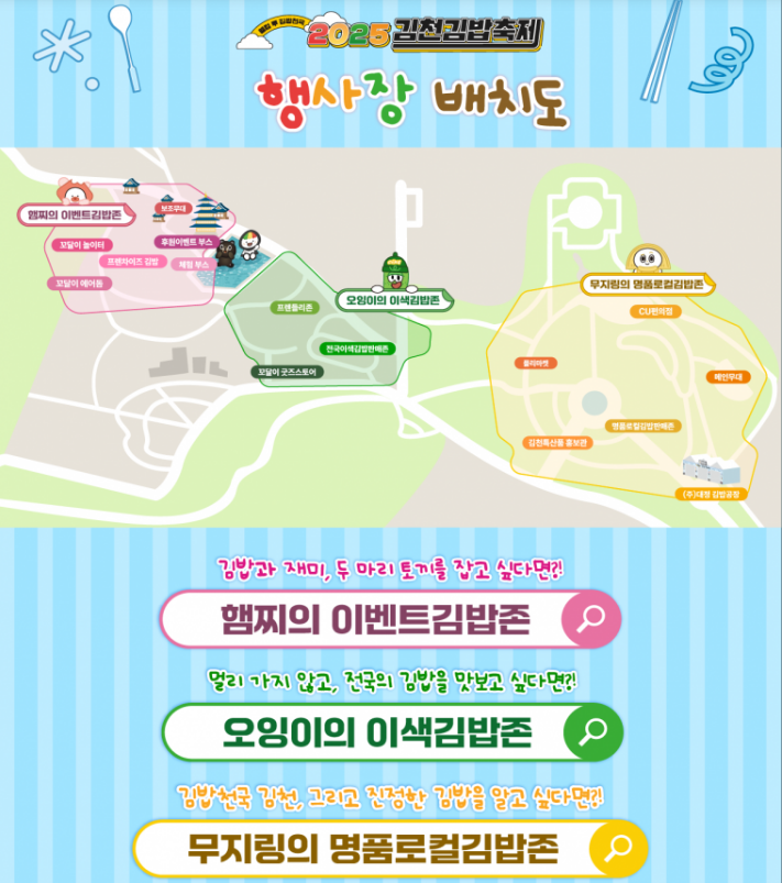 ‘김천김밥축제’는 단순한 음식 축제가 아니라 사람과 도시, 전통과 미래가 만나는 축제입니다. 김천의 자부심이 담긴 김밥 한 줄에는 지역민의 정성과 손맛이 녹아 있습니다. 10월의 김천은 향긋한 김밥 향기와 함께 활기로 가득 찹니다. 올가을, 가족과 친구, 연인과 함께 김천김밥축제에서 특별한 추억을 만들어보세요. 맛과 문화, 그리고 따뜻한 마음이 어우러진 김천에서 여러분을 기다립니다.
